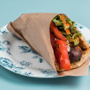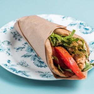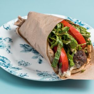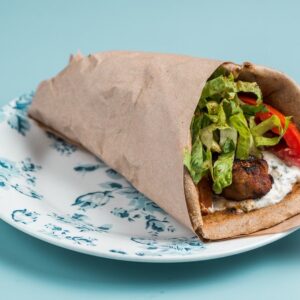 Φαλάφελ σε αράβικη πίτα ολικής, λάχανο-καρότο, μαρούλι, μελιτζάνα,…