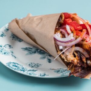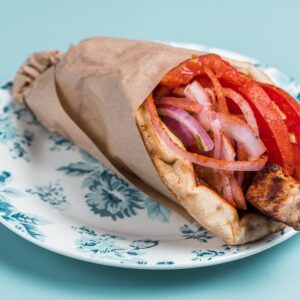 Γύρος χοιρινός με τζατζίκι, ντομάτα και κρεμμύδι