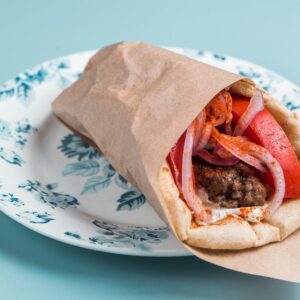 Κεμπάπ με κόκκινη γλυκοκαυτερή σάλτσα, γιαούρτι, κρεμμύδι και…